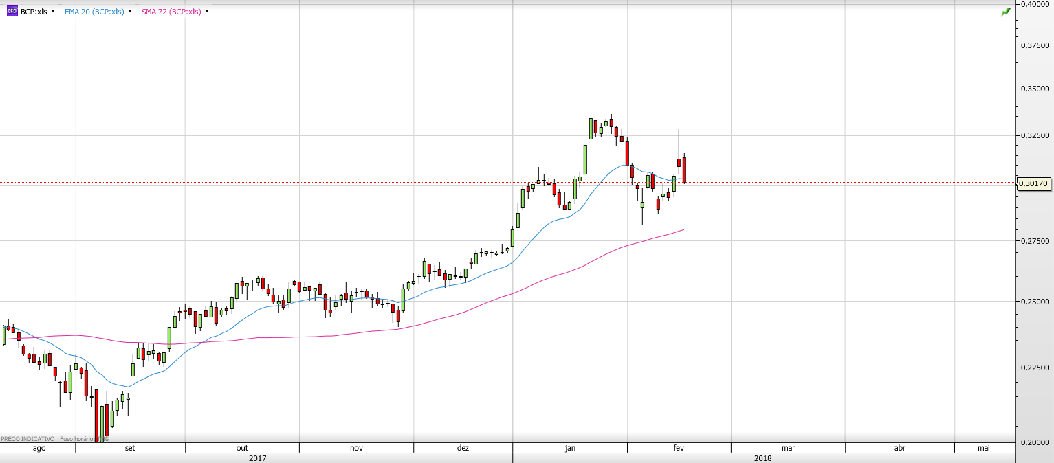 No BCP também "é uma vela intraday que não muda nada na tendência e sem grande significado, apenas mais um movimento diário."