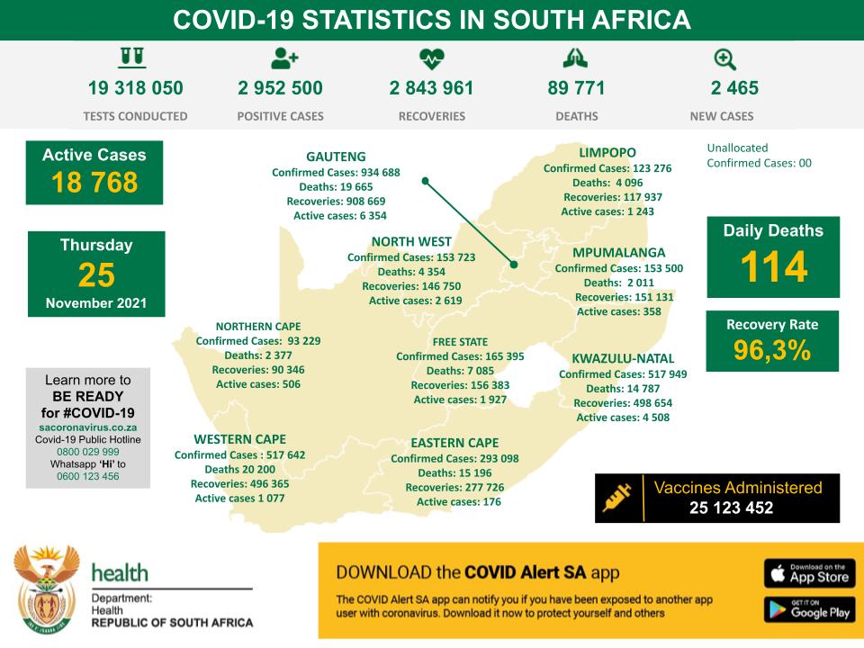 Esta nova variante Covid+mutações está originar na Africa do Sul apenas 2500 casos novos por dia e um average de 37 mortes (114 mortes ontem representou um pico semanal normal) » num país com 45 milhões de habitantes é um rácio muito mais favorável do que no UK ou em Portugal (85% da população vacinada vs apenas 60% na África do Sul).