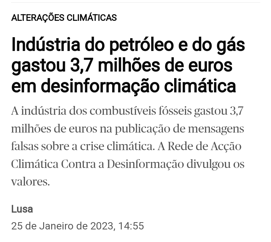 Depois temos de considerar que a industria do petróleo teve lucros recorde em 2022 por isso não vejo qual seria o interesse em mudar o que quer que seja, para além que na pratica temos exactamente o oposto nas campanhas de informação destas empresas. Basta entrar no site da BP ou Galp para ver como promovem o sustentável e as alternativas...