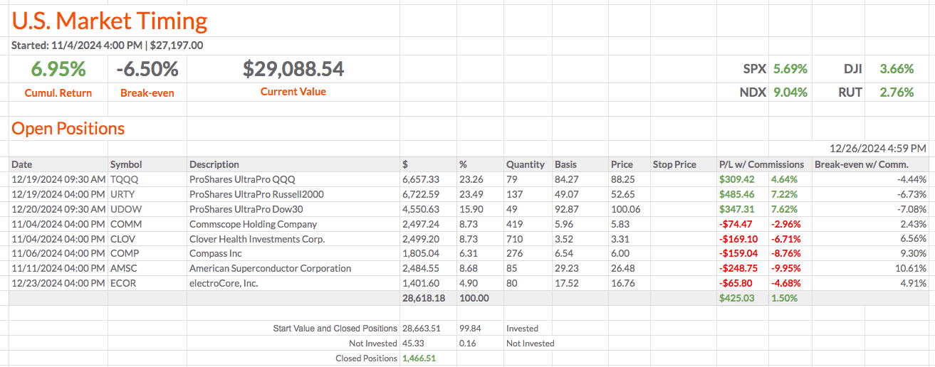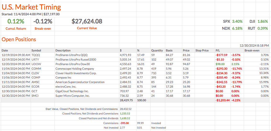 U.S. Market Timing: Últimos sinais de negociação para o próximo fecho