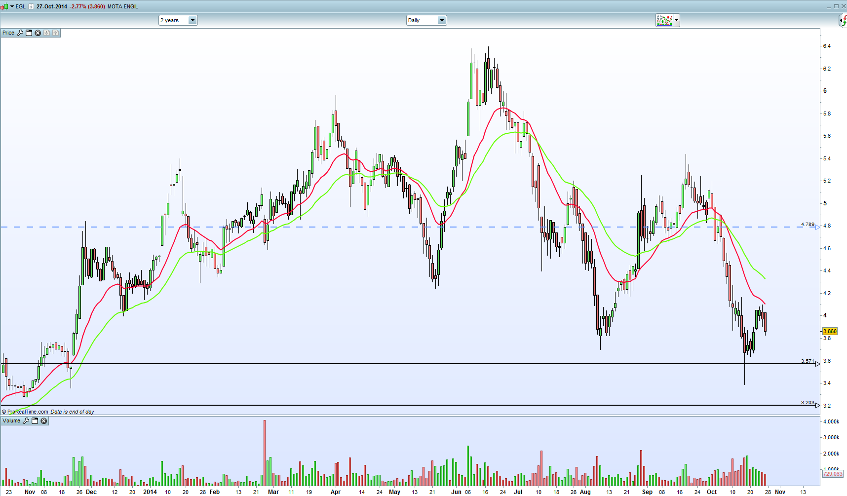 Mais uma e não é pequena! A Mota tem vindo a surpreender pelo volume e magnitude das obras que lhe são adjudicadas! Esta é de 1.330 milhões, no México onde tem vindo a ganhar várias e importantes obras este ano! O mercado está bear mas a Mota pode surpreender! Está a fazer o percurso no canal dos 3,40€ e 6,40€ em que arrancou em Setembro de 2013...se a IPO arrancar vai seguramente ao topo do canal! Depois dos máximos de Junho tem vindo a fazer lower highs num canal descendente que só será retificado se ultrapassar com consistência os 5,25€! Próxima resistência forte está bem definida nos 4,41!