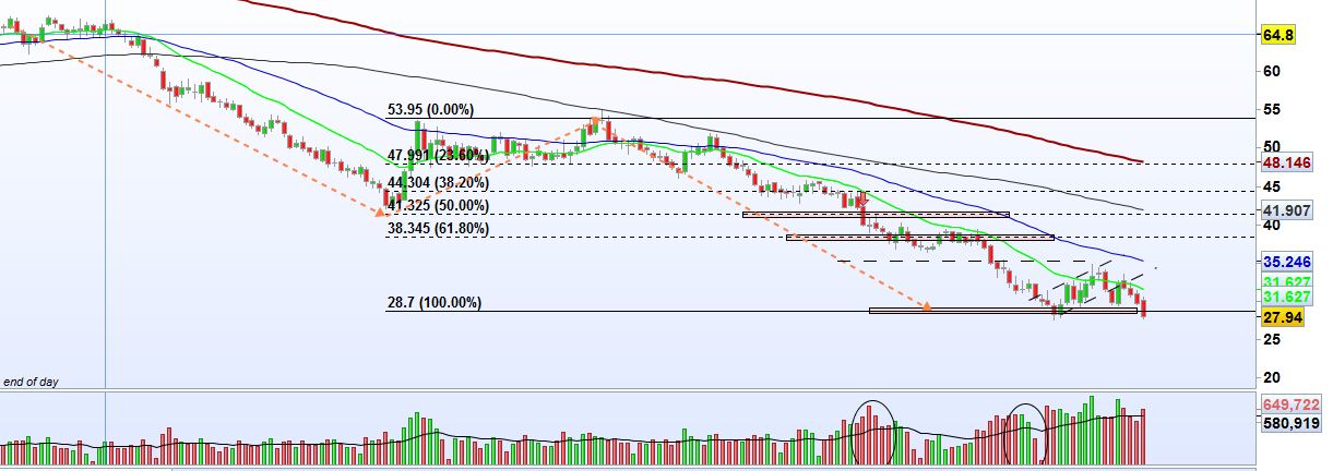O WTI está a fazer novo minimo nos 27.96 USD a cair mais de 7%. lá se foi o rebound de curta duração. Os stocks não perdoam.