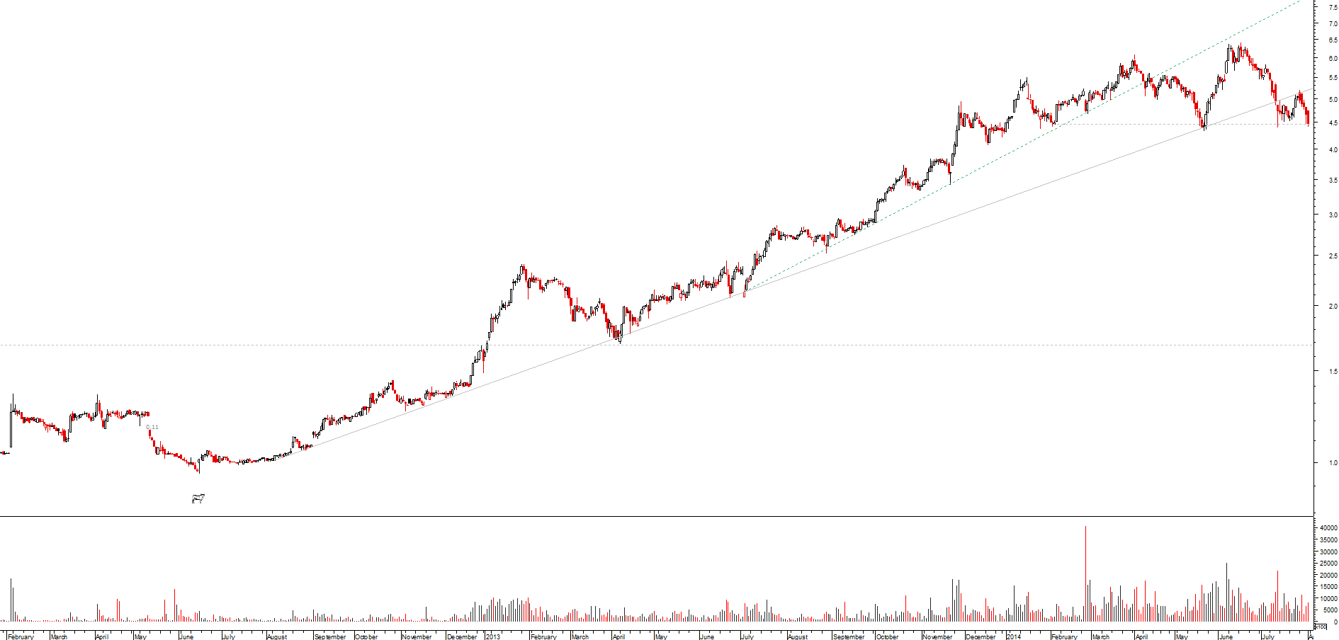 Só referi 6€ porque foi o valor aproximado do máximo mais recente, mas a confirmar-se o desbloquear da situação Mota-África e os bons resultados do 1º semestre, a ação pode (e seria tecnicamente importante) ir acima dos máximos mais recentes...