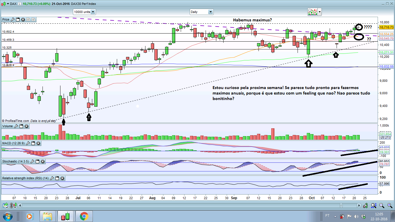 Em relaçao ao Dax eu ligo mais ao RSI do que ao stochastico por ser um indicador mais actual e menos tardio. O diario do Dax ainda indica subida apesar dos futuros americanos estarem vermelhos. Nao me admirava que hoje ainda dosse visitar os 10750