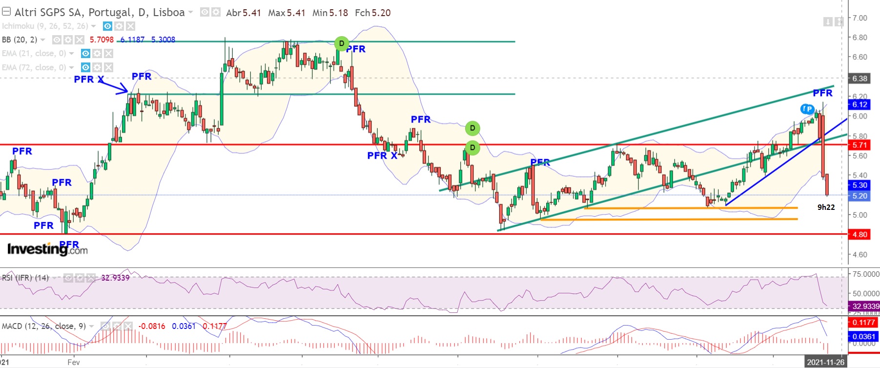Foi a dimensão da queda e a sobrevenda que me fizeram entrar na Altri. Foi uma pázada daquelas! Duvido que alguma vez a Altri o tenha feito em tão pouco tempo. Mas continuo a acreditar que se segura em 5,20. A não ser que surja uma notícia inesperada...