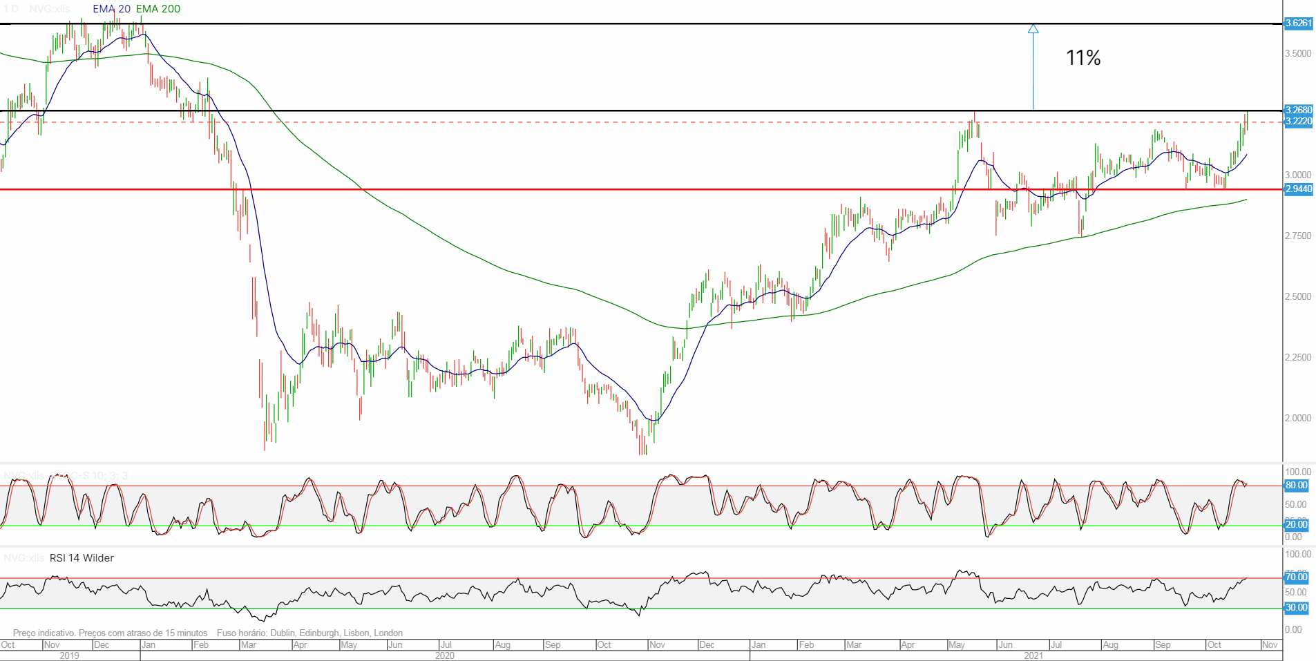 Tem acordado cheia de genica, mas bate com a cabeça na resistencia e volta para trás. Mas como os volumes estao bons, ver se consegue superar esta zona e ir aos 3.50/3.60