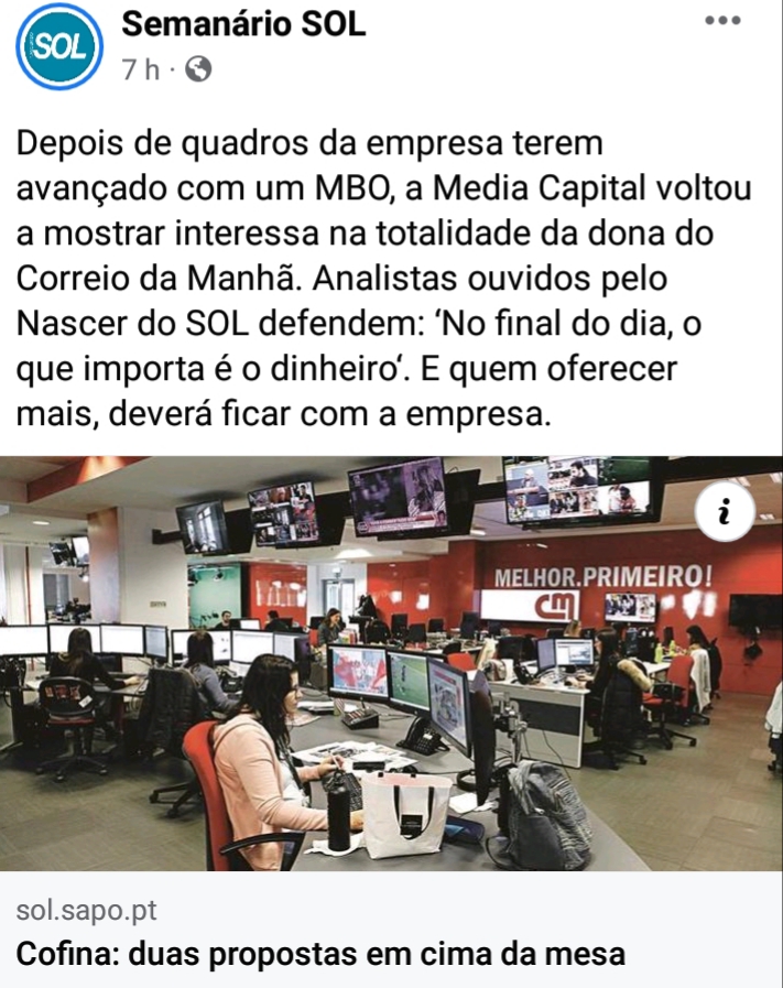 Agora a única questão é saber o que faz a Media Capital. Para poder ganhar isto tem de convencer os 2 do Grupo dos 5 que vão saltar fora e valem 30%, portanto só mesmo abrindo - muito - os cordões à bolsa porque de outro modo está fechado. A intervenção do CR no MBO fazia prever que não seria um idiota útil e portanto o MBO não seria apenas uma “lebre” (ainda que a hipótese fizesse sentido até o CR chegar).
