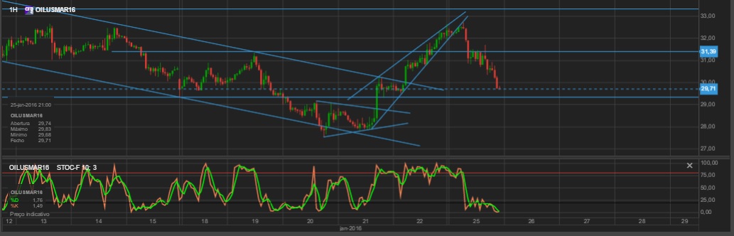 Eu já disse como vai ser o meu comportamento na próxima semana no crude. Entrar logo que o mercado vier a 32 com stop cá em baixo. Se não subir pelo menos 2usd reforço na sexta feira a 29 para vender a perto de 32 na outra semana. Fácil.