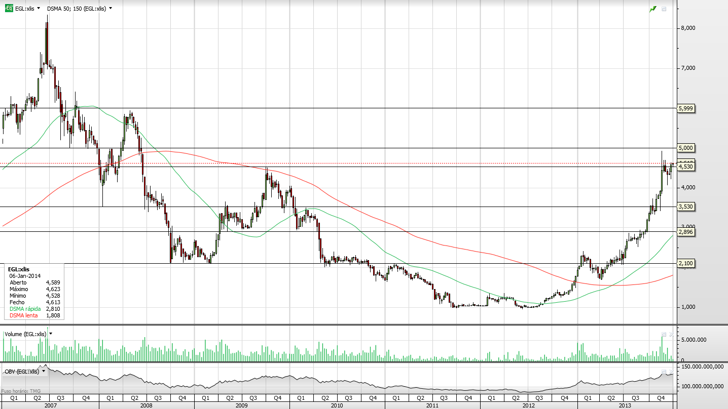 - O grupo de construção português acumulou até segunda-feira um crescimento em bolsa de 176,5%. As acções, há um ano nos 1,5 euros, chegaram agora aos 4,33 euros. Um movimento que se consolidou na recta final de 2013, com os investidores a receberem de forma positiva o anúncio de que a unidade de negócios africanos, a Mota-Engil África, vai passar a ter capital disperso numa bolsa europeia.