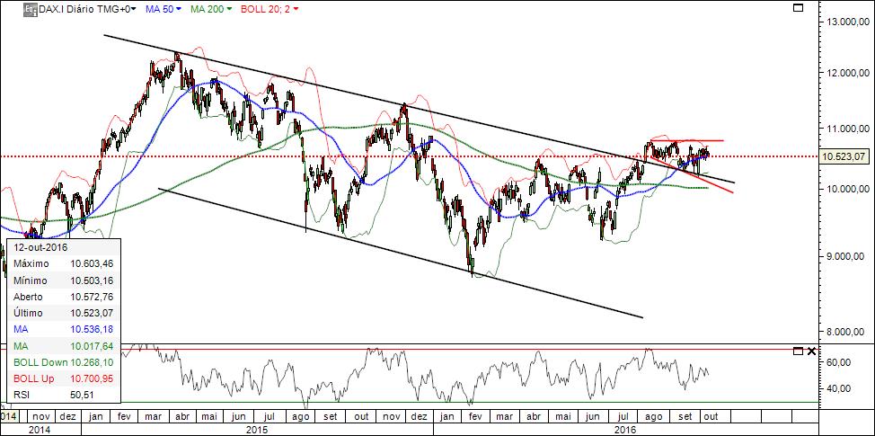 Habitualmente isto indicaria um clara caminho para baixo mas se o DAX abrir em gap down, pode haver uma tentativa de recuperação antes de continuar as quedas. Vejo o suporte nos 10250s