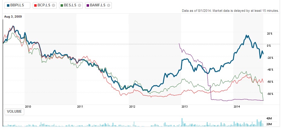Performance em bolsa nos últimos 5 anos: BPI, BCP, BES, BANIF
