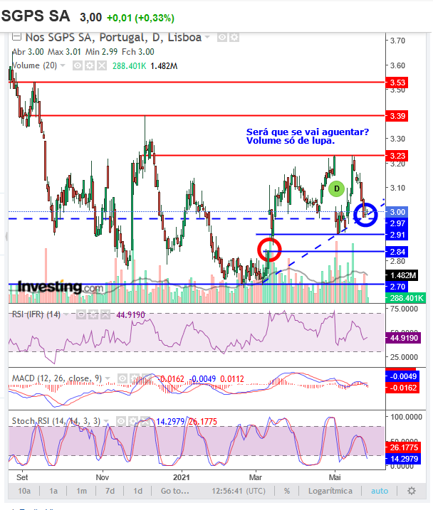 A NOS lá se vai aguentando. Nao sobe muito, nem desce muito. Se aguentar por aqui esta correcçao no PSI pode dar boa entrada.