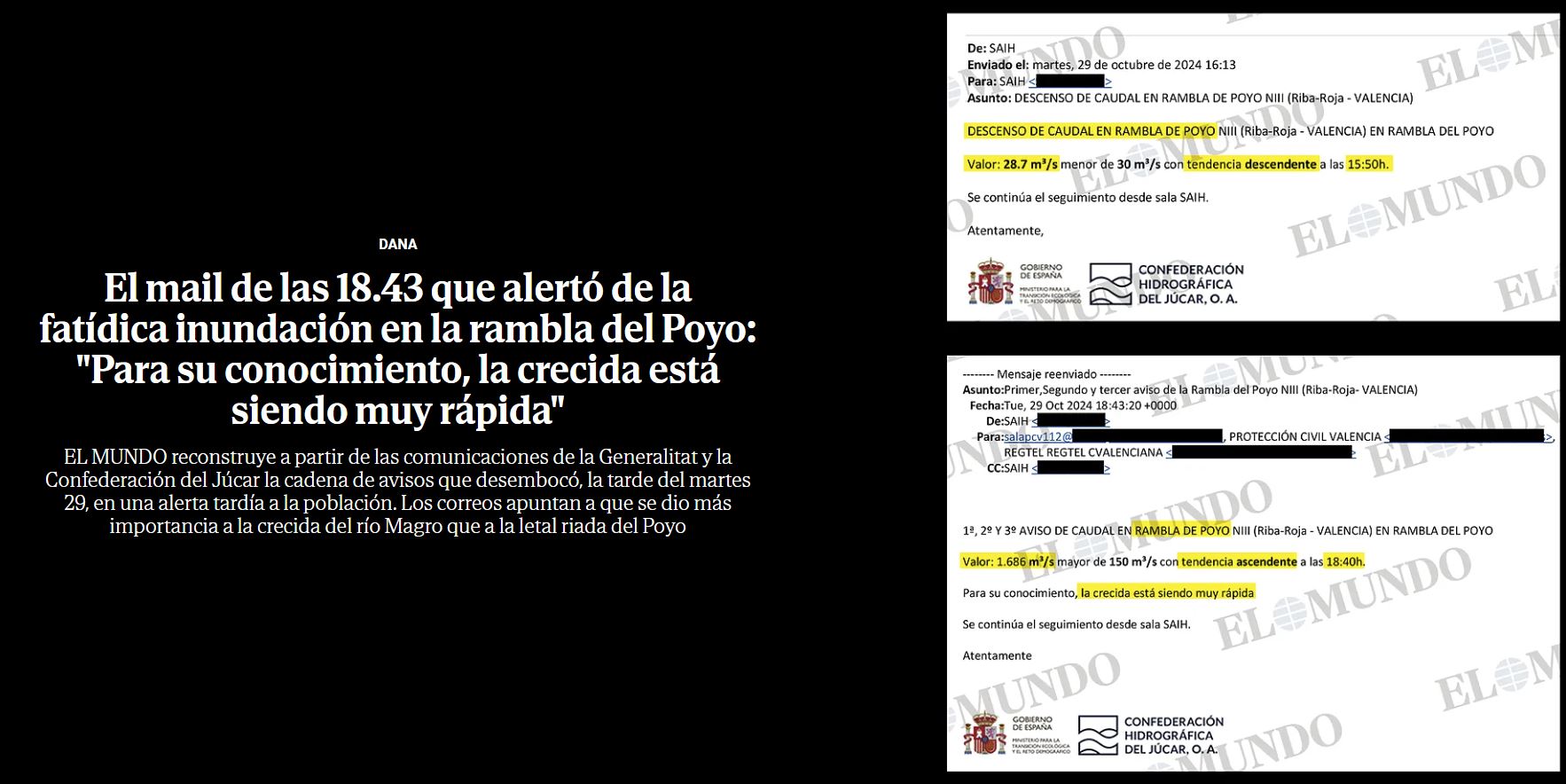 La Generalitat planeó evacuar dos pueblos que no resultaron dañados; la Confederación Hidrográfica se desentendió de la gran riada; la responsable de Interior no sabía que podía lanzar una alerta y Mazón llegó cuando los alcaldes llamaban entre lágrimas