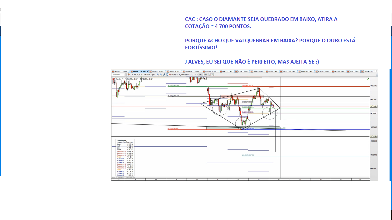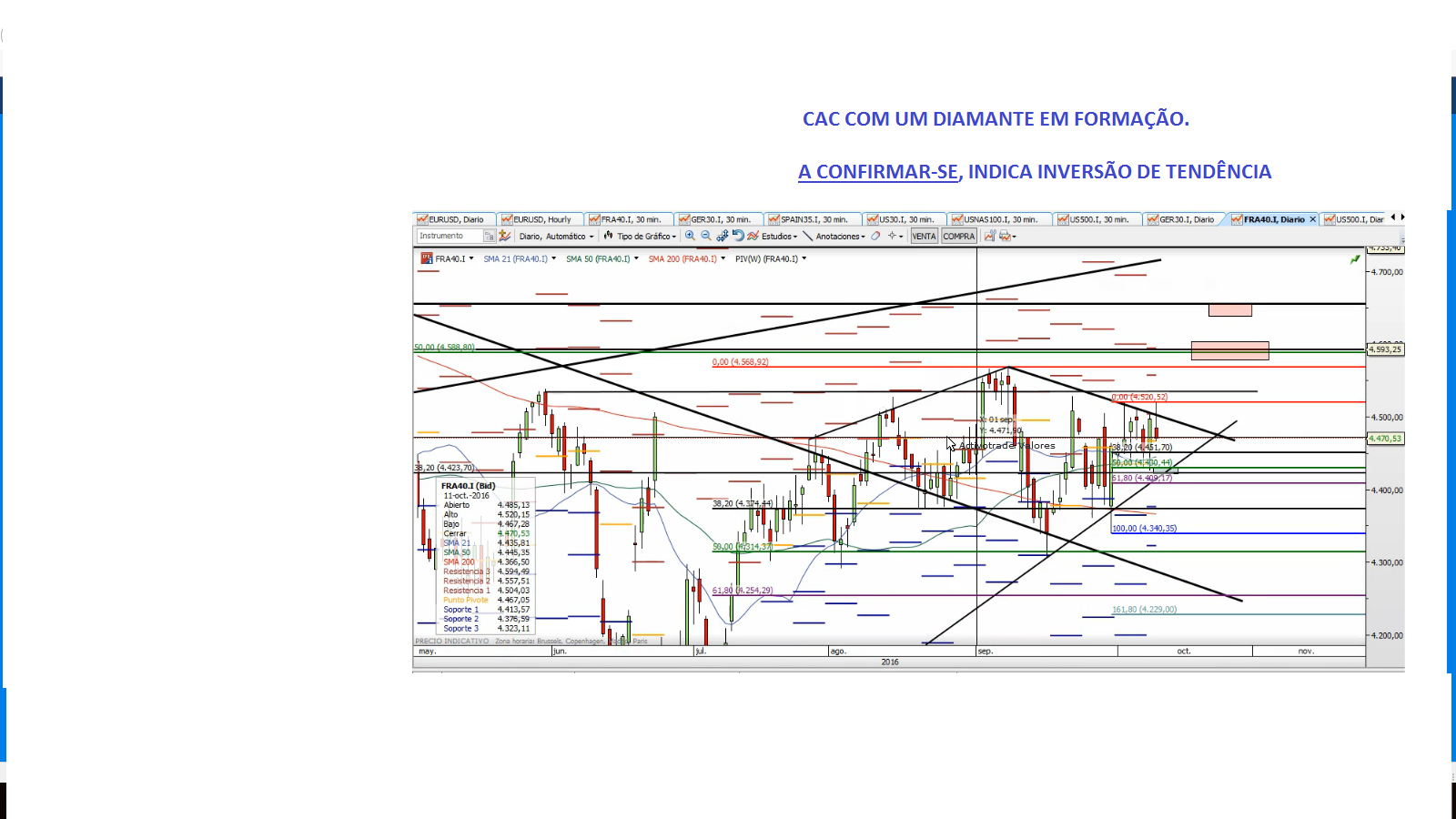 O ouro em alta, e o CAC rompeu o diamante em alta também