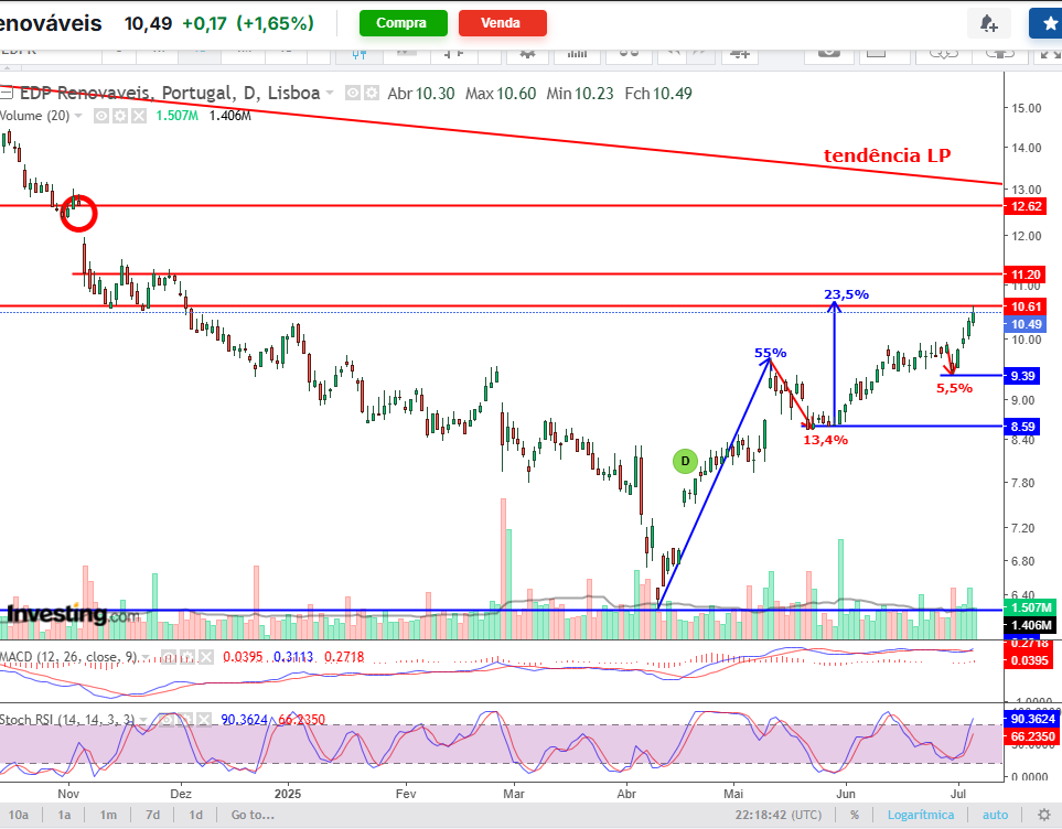 9,77-9,39=0,38. Não as recomprei porque me pareceu que iria corrigir mais.