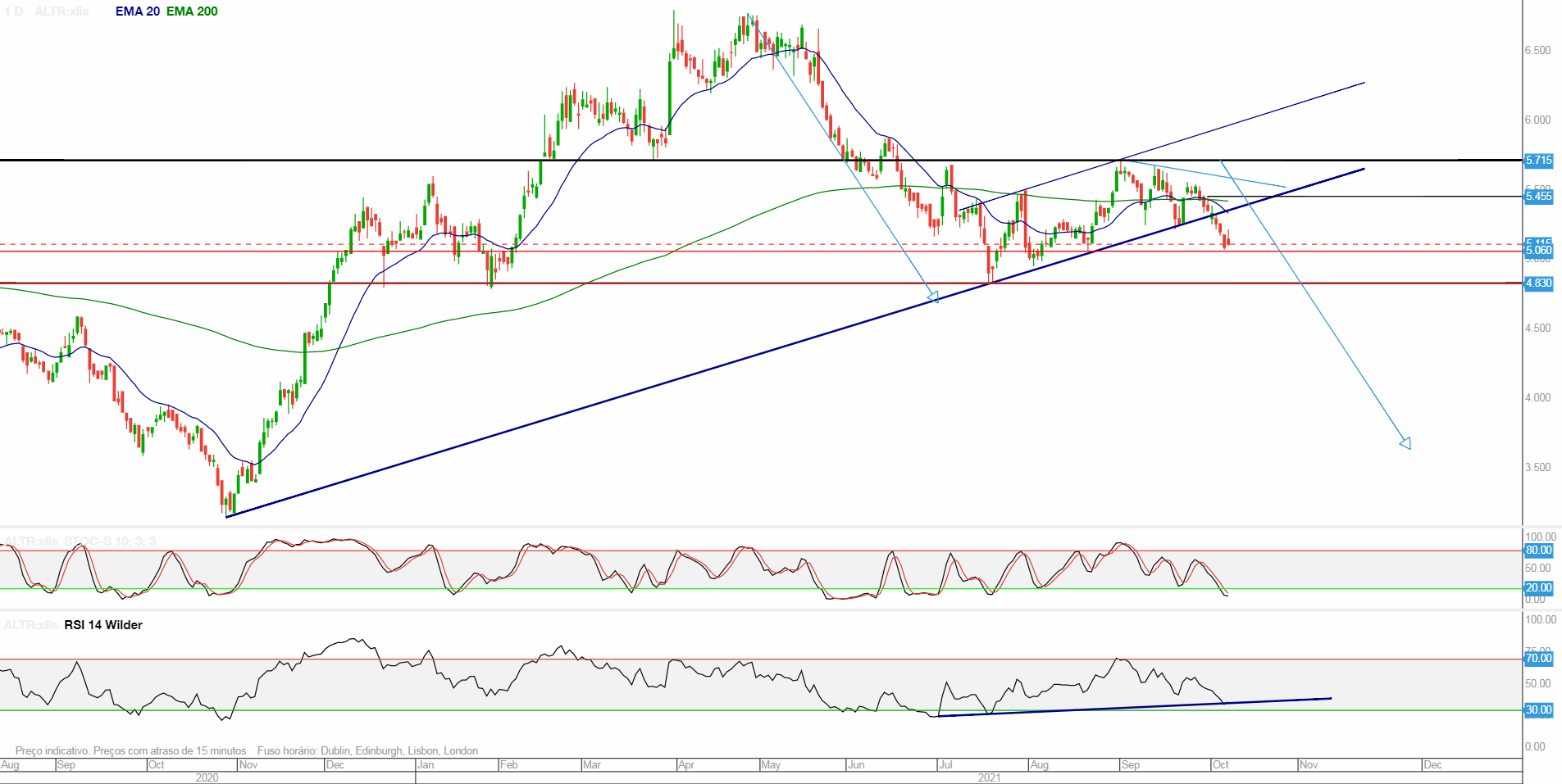 Reentrar na Altri só acima de 5.17, abaixo desse valor estará na mão dos ursos, sendo que a probabilidade de vir a 5 é elevada.