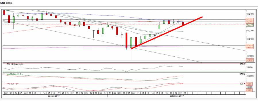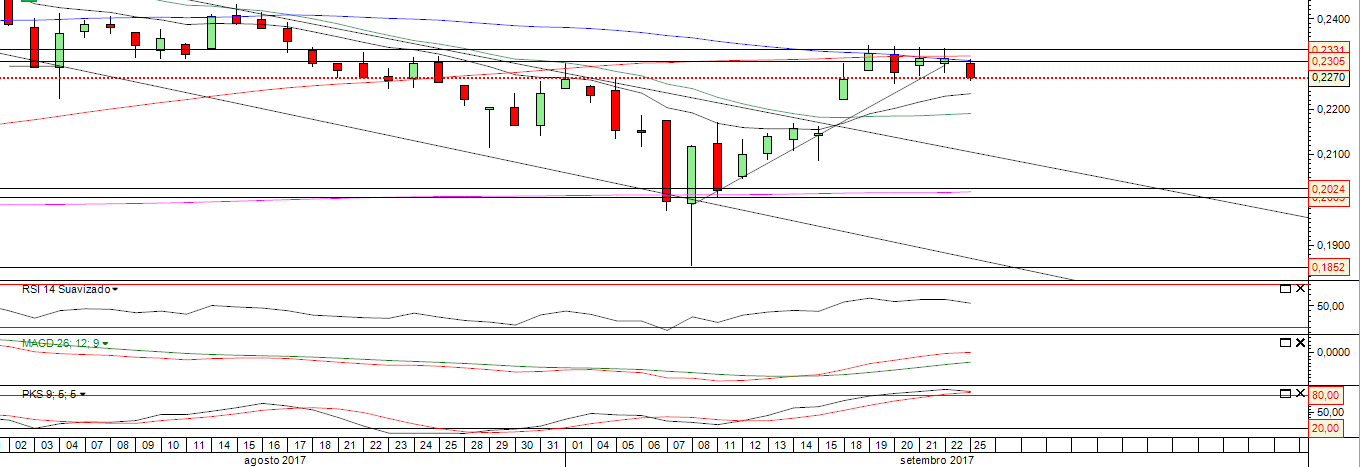 fiz um reforço de 20% da carteira no BCP nos 0,2282, tinha vendido 20% nos 0,2330 na semana anterior, acredito que está numa lateralização entre os 0,2270 - 0,2340, daí a minha venda seguida dum reforço.