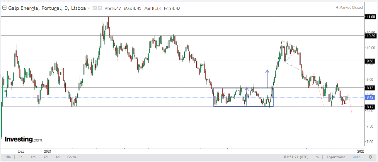 Mais importante que a suposta "Bear flag", para quem está dentro, é que a Galp não quebre em baixa mais uma zona de suporte, pela zona dos 8,12, pois caso tal ocorra, será mais um sinal de fraqueza.