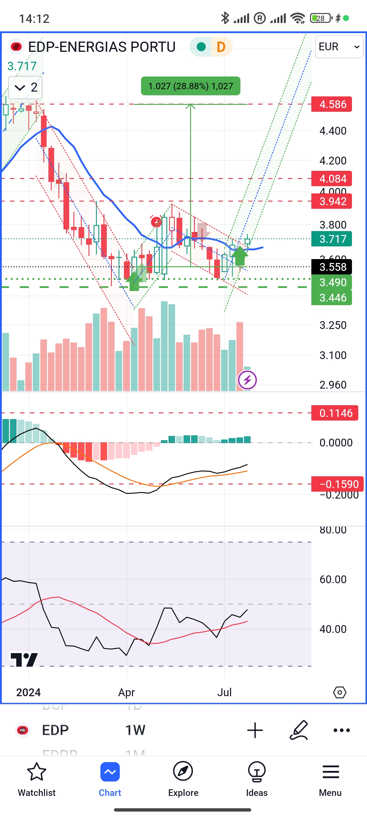 EDP para ter quebrado resistencia dos 3.90, zona que nao pisava desde Janeiro/Fevereiro.