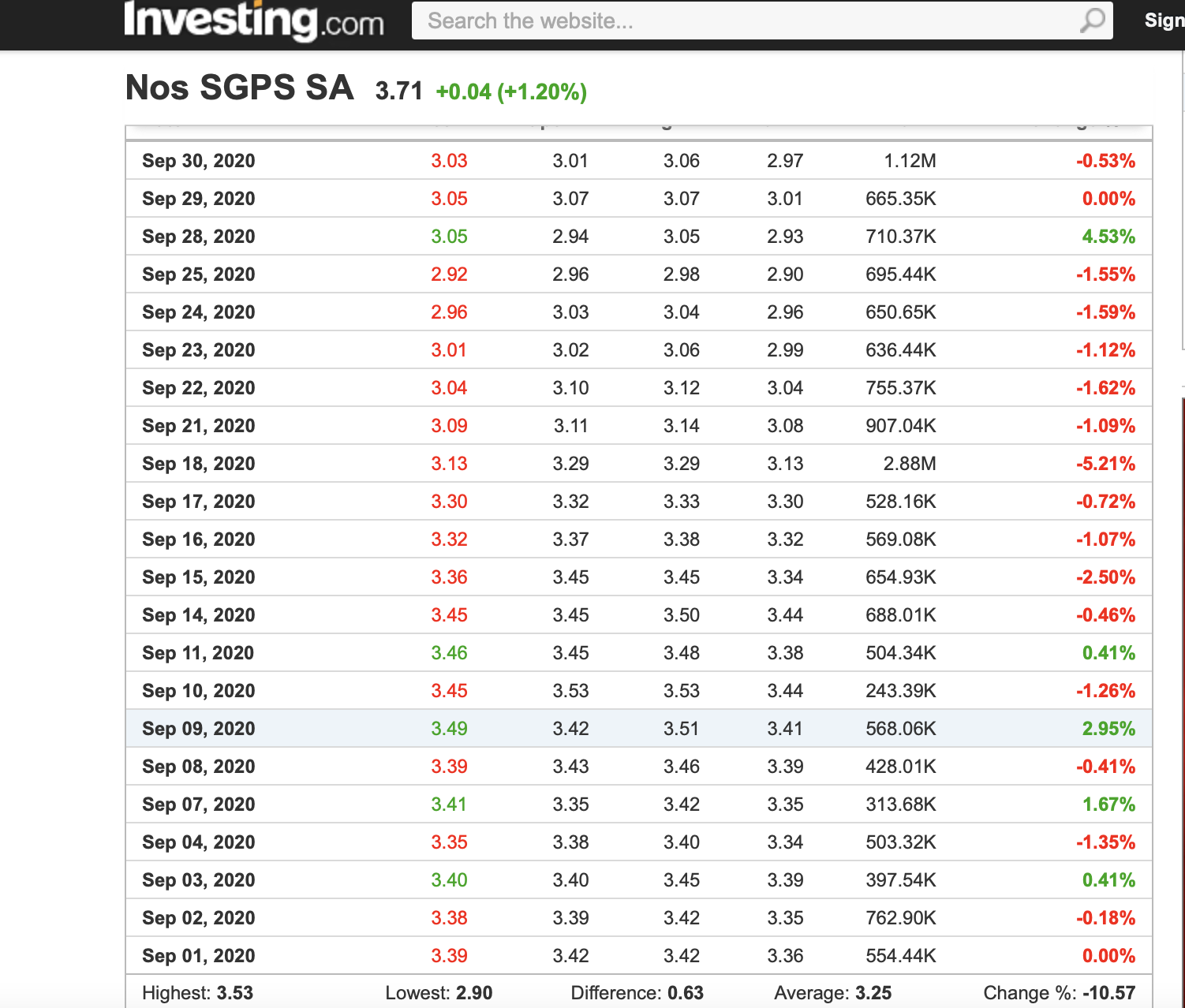sendo que, o preço da nos durante todo o mês de setembro de 2020 foi inferior ao que cota no presente.