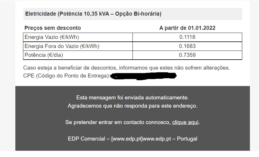 Acabo de ligar para a EDP Comercial: “a EDP ainda não definiu os novos preços da electricidade a vigorar a partir de 1 Janeiro 2022” foi a resposta.