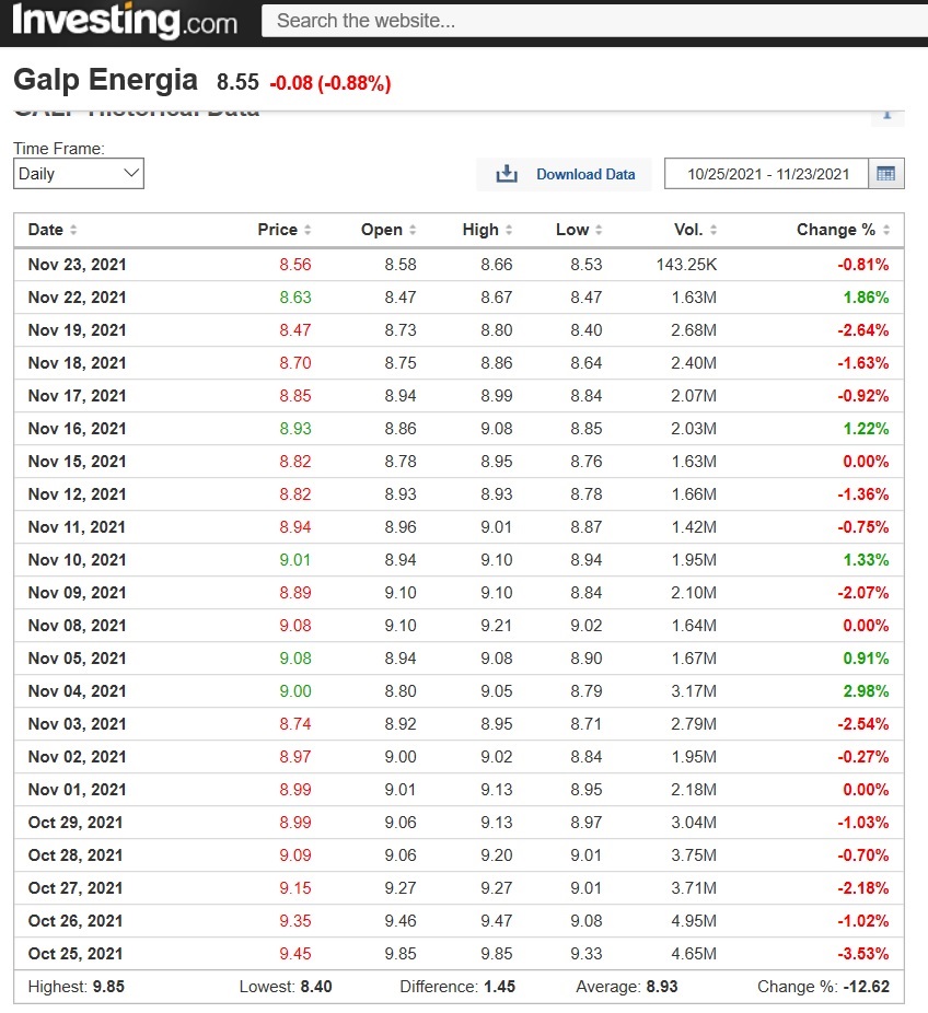 No BES isso tb aconteceu até ao último dia de negociação. Ou seja, não será um argumento que abone a favor da galp.....