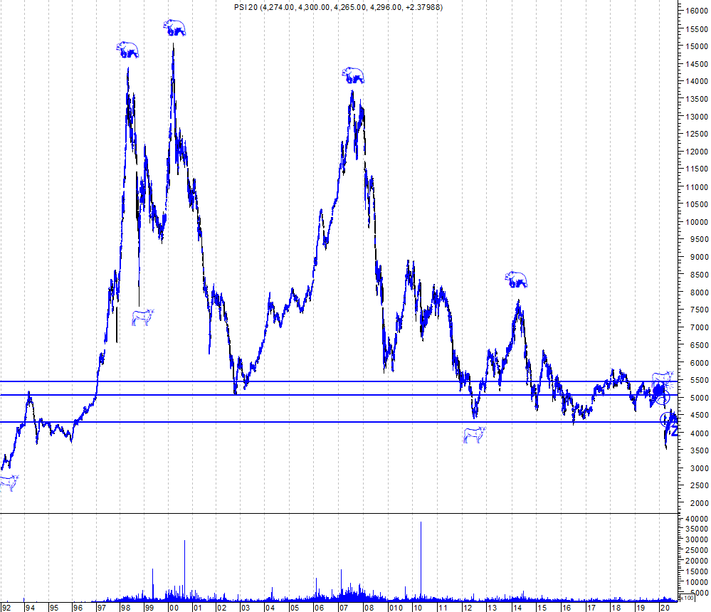 Deixo os gráficos actualizados, incluindo o de longo prazo, dos últimos 28 anos da Bolsa portuguesa.