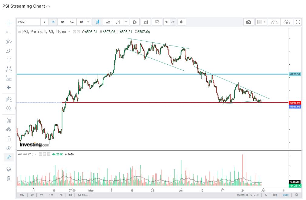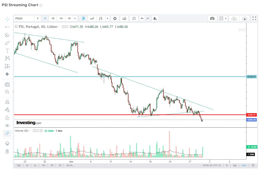 Deixo gráfico do PSI com quebra de suporte. Diria que não convence mas os ursos começam a dar sinais de alerta.