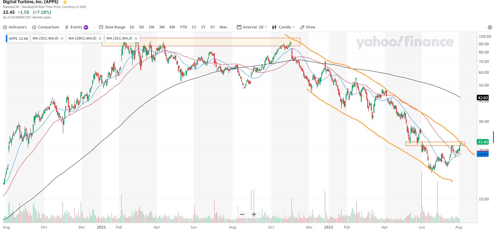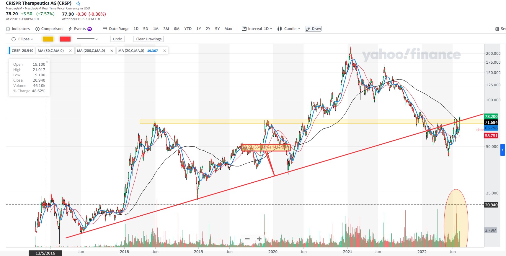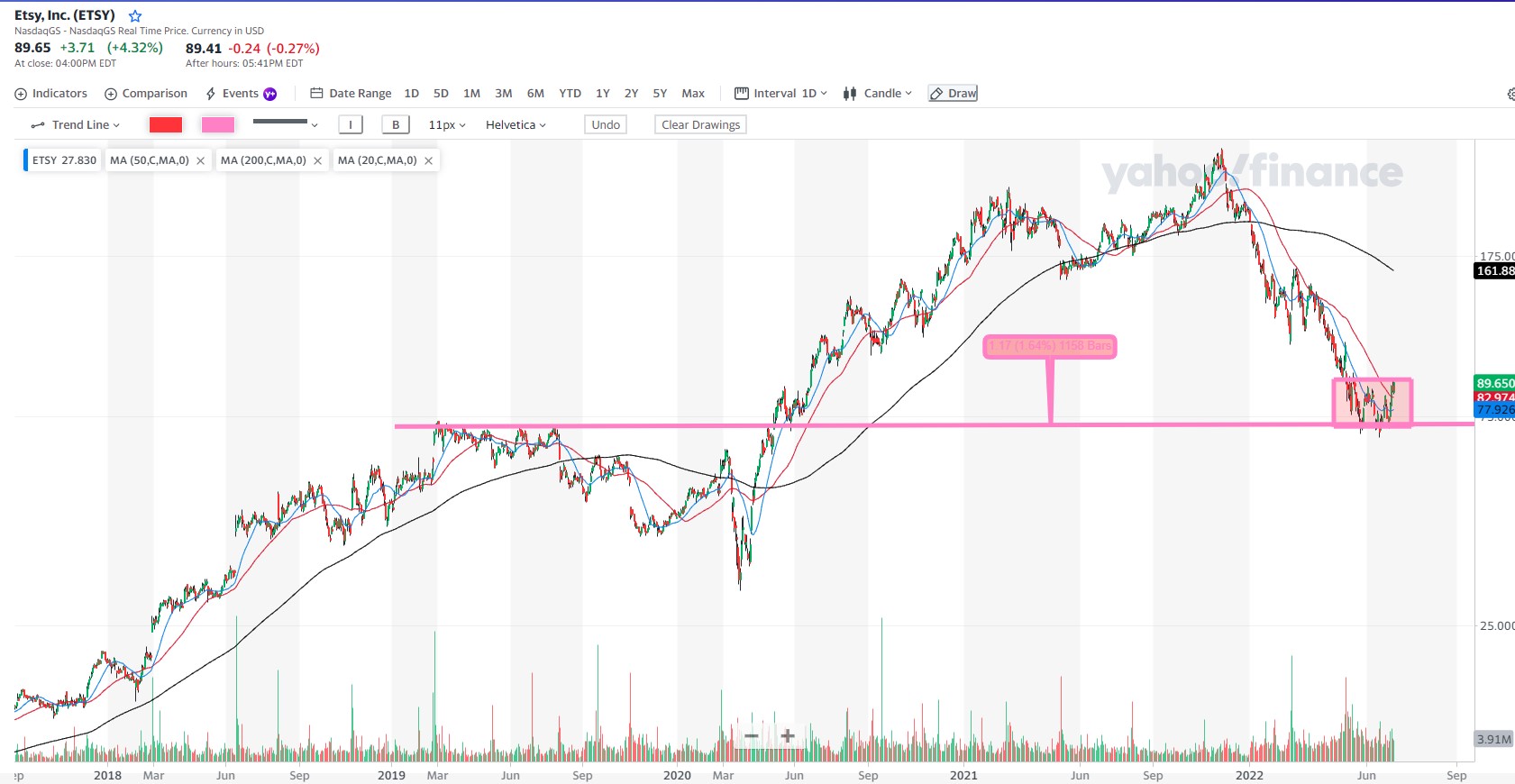 Interessante verificar que o nível de actividade à volta deste título, que era um dos que compunha a nova parelha de títulos com hype "SMART" (em oposição ao precedente FANG), minguou bastante; comparem o nível de actividade (volume) até 2021 e depois.