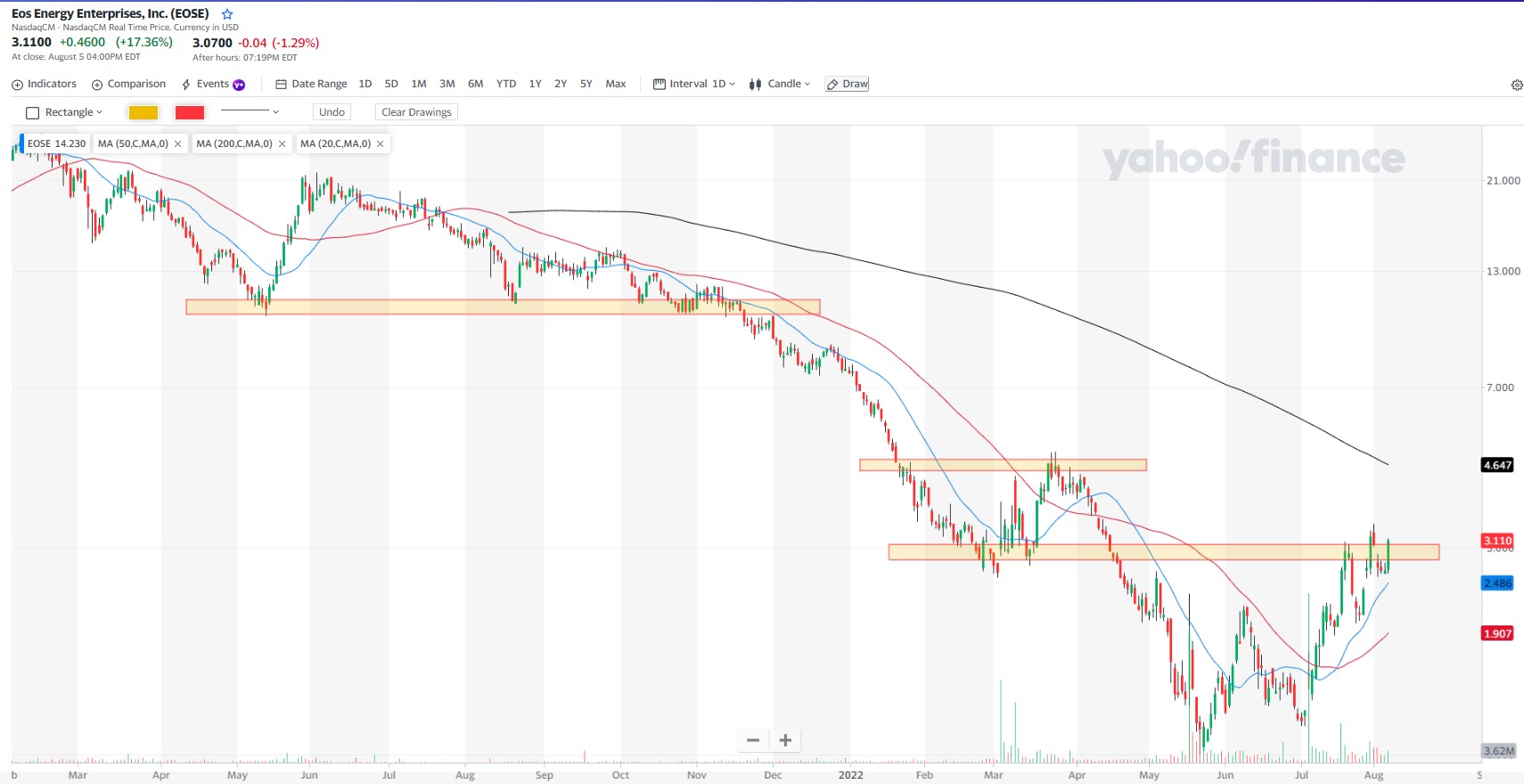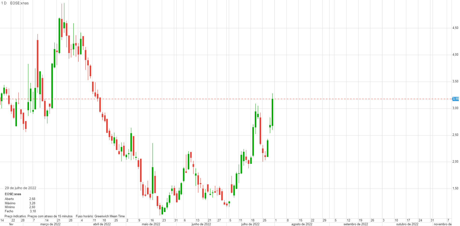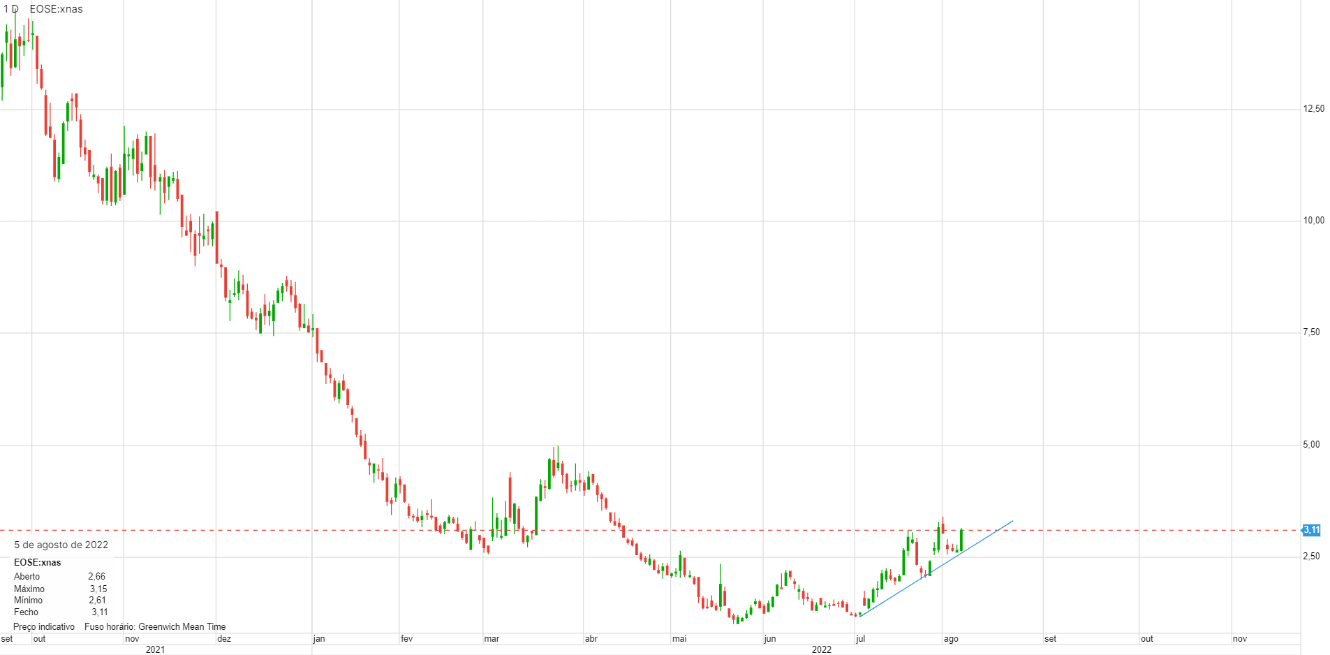 Kooc Escreveu:A EOS Energy, recomendação de um ilustre membro do forum, tb tem um aspeto promissor. Eu entrei um pouco cede demais, mas esta é daquelas que pode dar boas rentabilidades em pouco tempo. Claro que as quedas tb podem ser significativas.