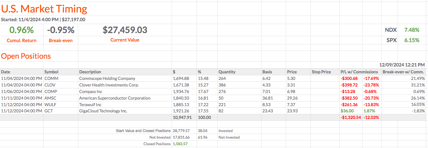Em 06/12/2024, a carteira estava 4,24% abaixo do SPX (SPX: +6,61%). Em 14/12/2024, está 8,01% abaixo do SPX (SPX: +5,92%).