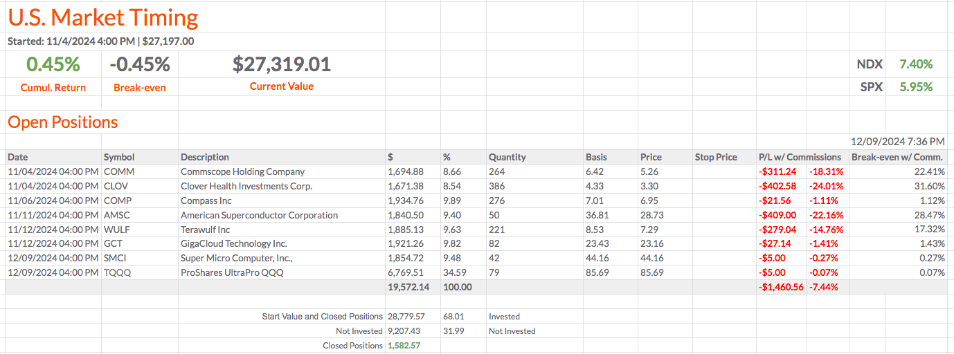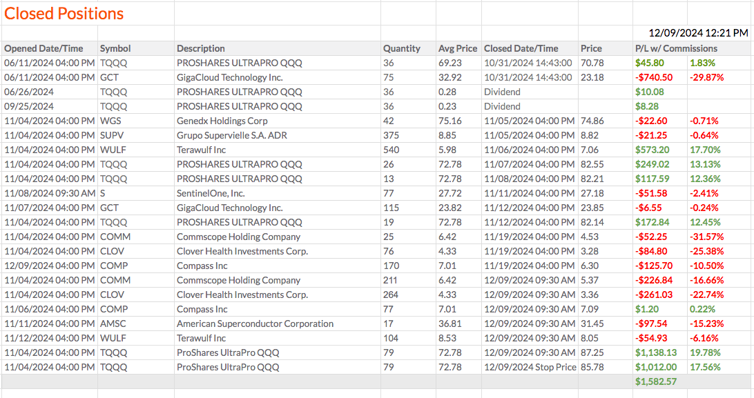 Saí totalmente da posição do TQQQ. Fechei metade na abertura e a outra metade foi fechada com o stop. No entanto, vou comprar novamente e também adicionar a SMCI.