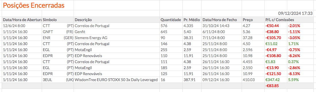 O ativo que mais subiu desde 06/12/2024 foi a Mota Engil (EGL), com +7,63%.