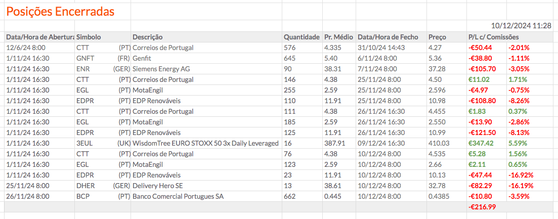 A COMM, por exemplo, desceu -43,01% desde 6 de novembro, mas agora está a descer apenas -20,17%, e quem sabe se no próximo ano não vai estar a subir mais de 100%. Foi para tentar ter valorizações desse género que escolhi estas ações. Já sabia que eram voláteis, e essa foi também uma das razões porque as escolhi.