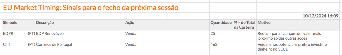 Vou reduzir algumas quantidades das ações que tenho e comprar mais uma ação europeia fora de Portugal.