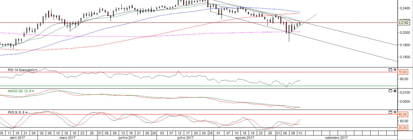 Veremos para que direcção se desloca esta cotada no "pós-almoço". O ideal seria fechar nos 0.2175, consolidando a quebra total da LTD.