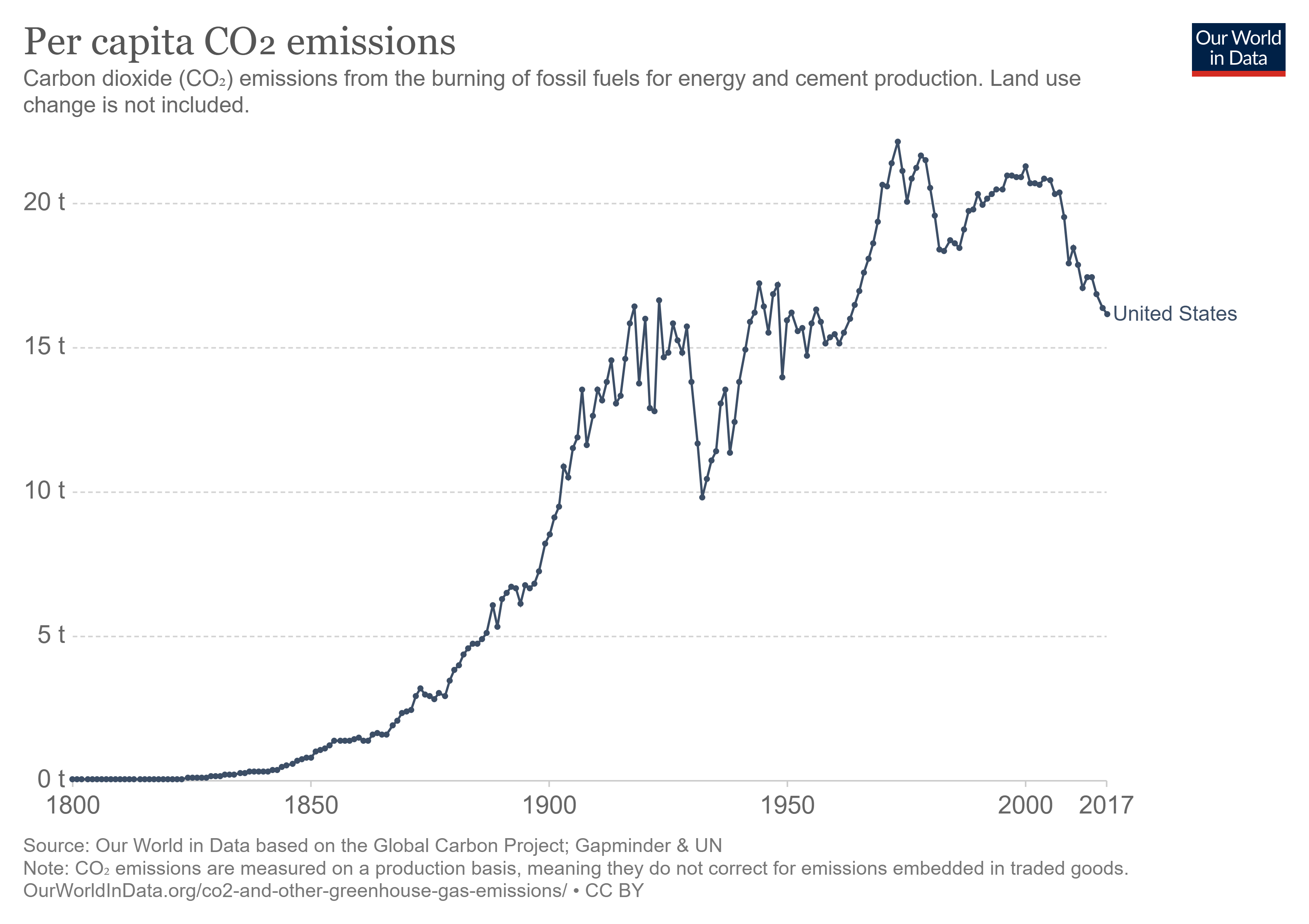 Na verdade, nos EUA, as emissões de CO2 per capita estão em queda desde o ano 2000 - isso não mudou nem com Bush, nem com Obama nem com Trump, o qual até tinha razão ao dizer que há muitos que continuam no Acordo mas continuam a poluir mais.