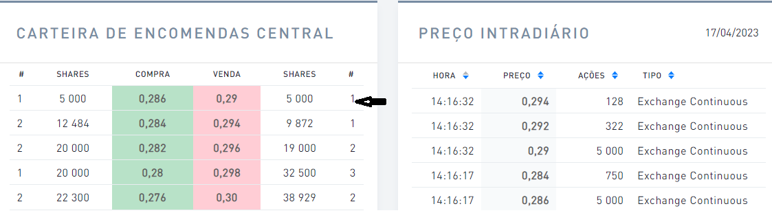 A compra a 0,286 € é do mesmo que está a vender a 0,29 €