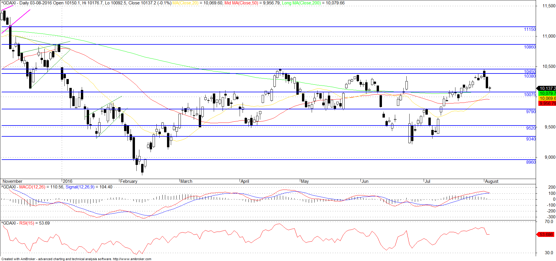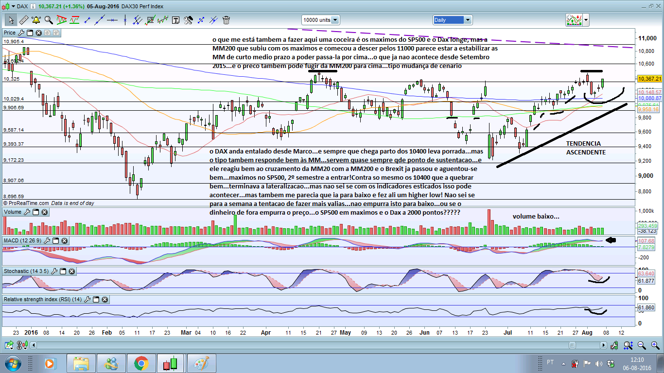 Dax sobrecomprado e nao consigo ver se volumes estao a diminuir. A vela de hoje, exuberante marubozo, pode ser vela de exaustão? Ou a continuaçao de uma euforia?