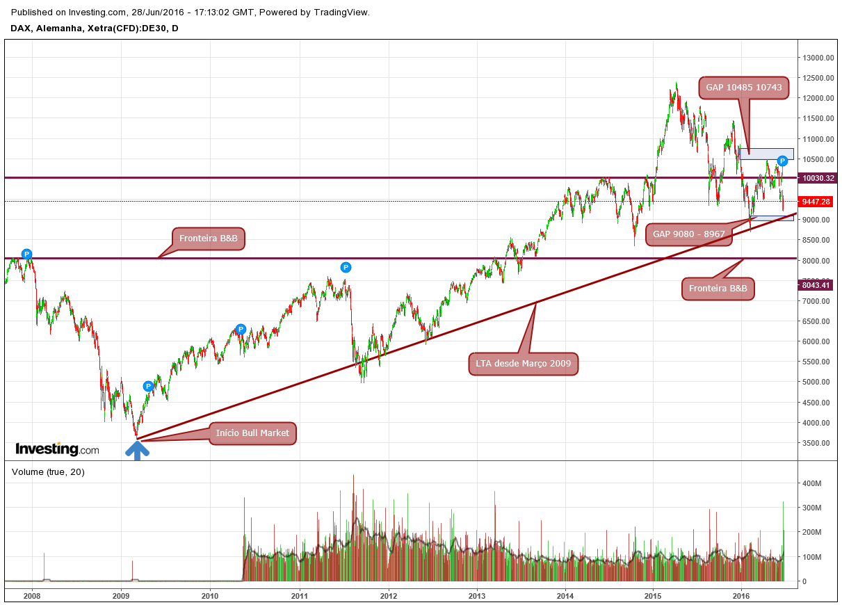 1. O DAX encontra-se em Bull Market desde Março de 2009 e assim se manterá até quebrar o suporte dos 8000-8100 pontos, que para mim é a fronteira Bull/Bear.