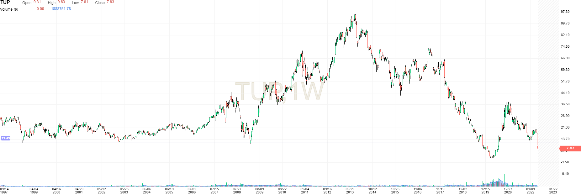 Interessante o gráfico da Tupperware. Lembro de quando falaram dela aqui a 2$ e logo a seguir rumou aos 40$.