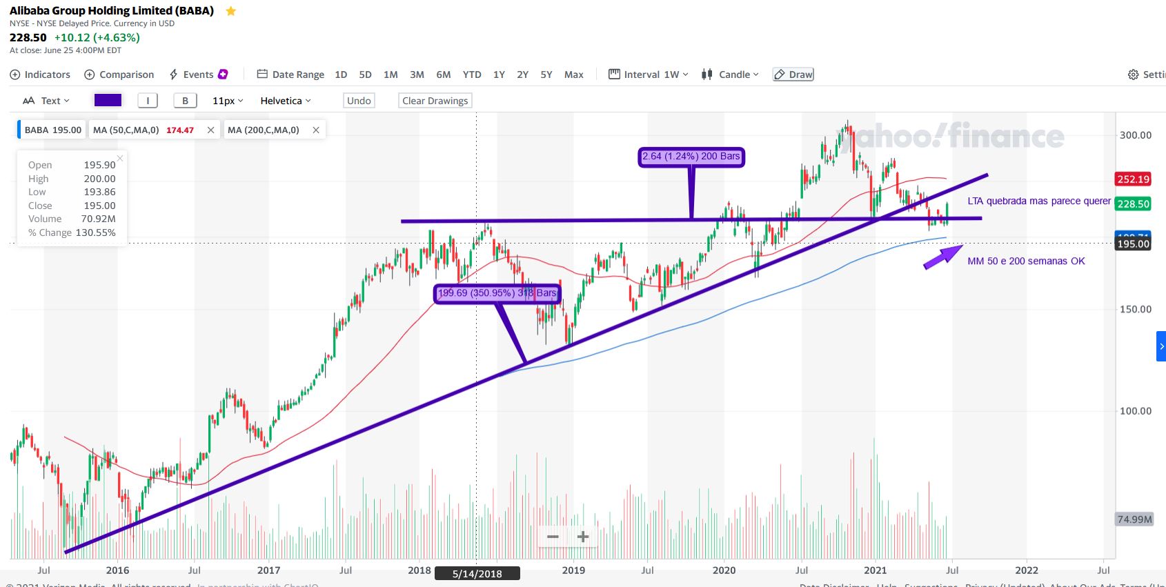 É justo poder dizer que a Alibaba tem um suporte na ordem dos 175/185$ e a JD.com nos 61/63$?