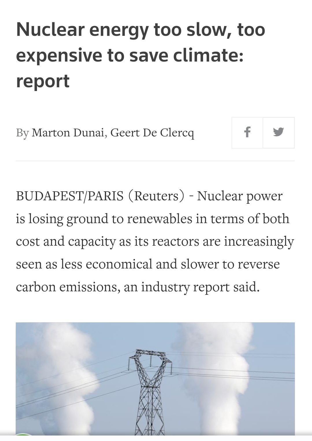 A Energia Nuclear é Lenta, muito Cara e altamente Poluente durante a sua construção
