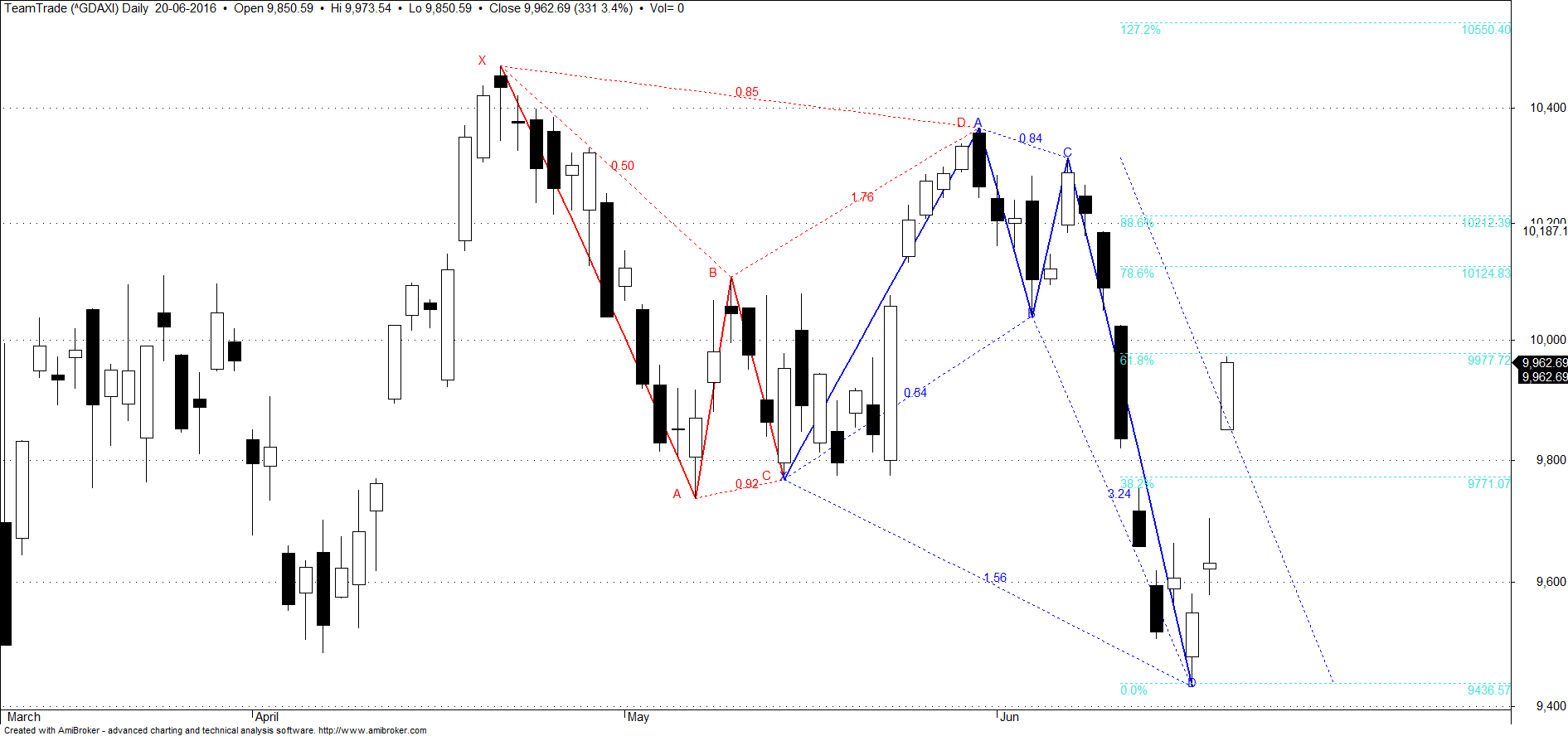 Por outro lado, é possível que a vela de hoje seja a activação do bullish crab mas precisa de uma confirmação amanha dado que eu ando muito desconfiado de qualquer subida antes do referendo ingles.