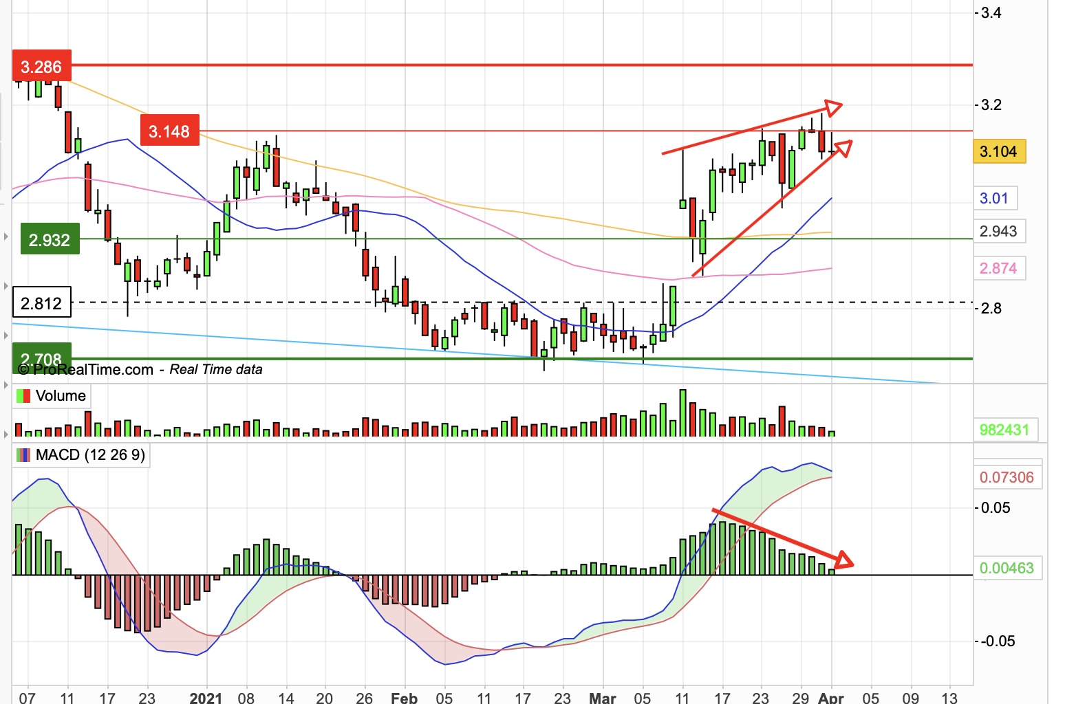 NaoSei Escreveu:na minha opiniao essa cunha nao está bem sinalizada, a linha inferior está acima dos pontos minimos diarios, de qq maneira é uma cunha ascendente que vai muito provavelmente romper para baixo não é?