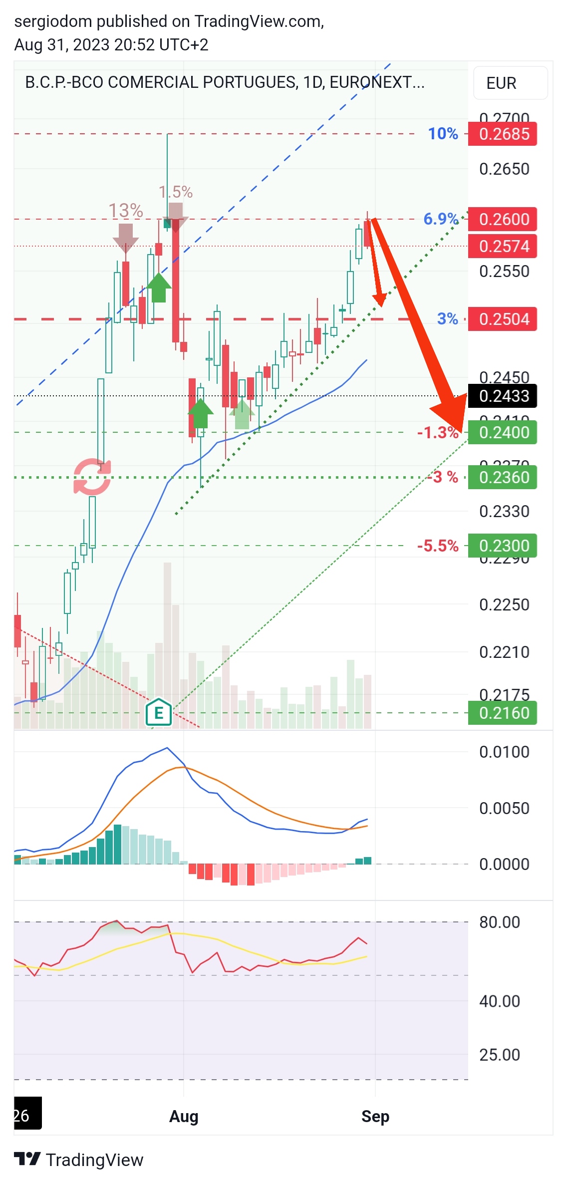 Surpreendeu_me o bcp, tentado a reentrar amanha na abertura se nao fizer gap mt grande, 27 pelo menos tem espaco nos indicadores