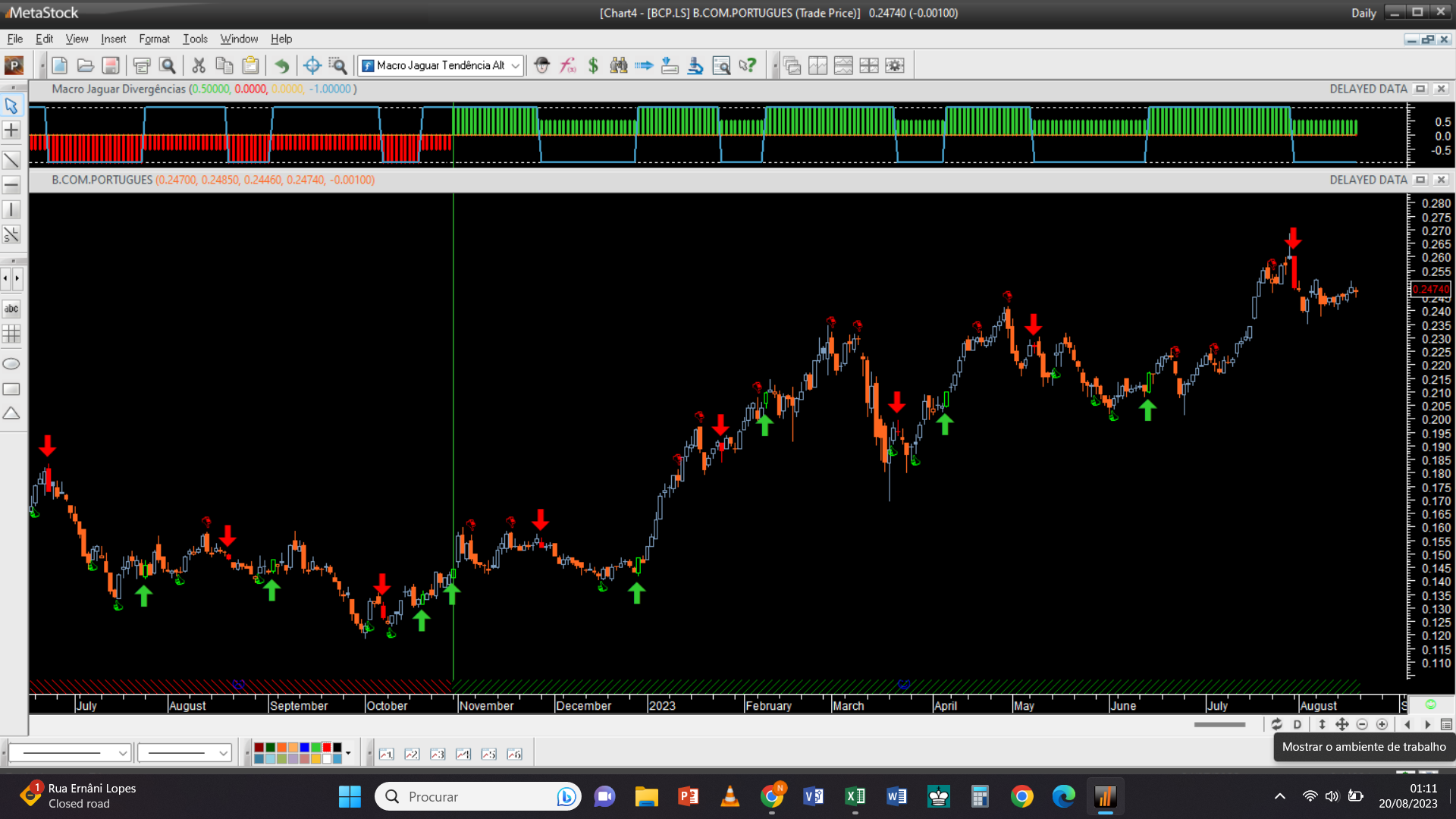 Na minha visão pessoal, influenciado seguramente pelo sistema de trading usado, poderei apenas acrescentar que para já a manutenção de posições longas sobre o BCP continua a fazer sentido, desde finais de outubro do ano passado, embora mantendo à data presente algumas reservas tendo em conta que o principal indicador se encontra positivo mas a carburar a meio gás!