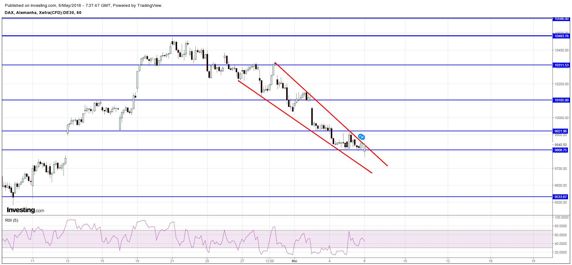 Também acho que após recuperação, poderia fazer o duplo fundo nos 9500. Curiosamente, no IG Markets Domingo, o CFDs estão a negociar ligeiramente negativos, whatever that means...