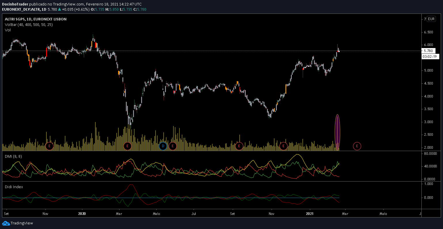 Em vias de ser One bagger (dos 3.20), com valorização materializada de 90% (parceira Navigator 76%) a 4,5 meses e de 50% (Navigator 31%) a 3 meses, tem um gráfico incontestavelmente Bull CP MP LP (e longe da LTA 1Y), ainda aguarda por dividendos (NVG e Altri vão superar-se?), resultados anuais e sobretudo por uma agradável guidance 2021, com potencial (se não existirem crashes este ano) de chegar a 2 bagger.
