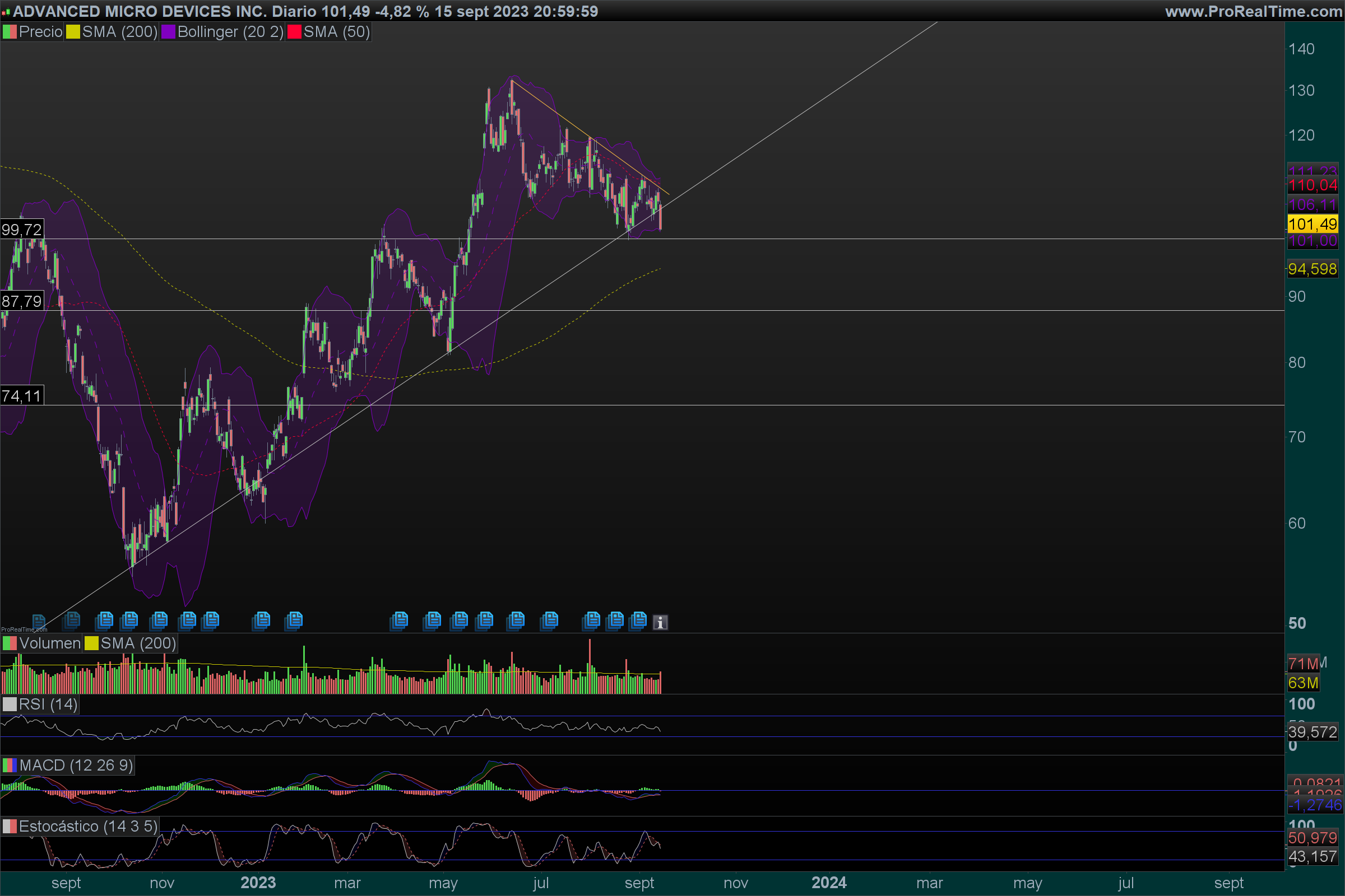 A AMD está em bear market e parece que se aumentar a cadencia de queda.